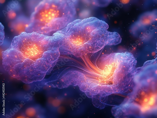 Enchanting Nebula Formations: A Mesmerizing Dance of Light and Matter, Illuminating the Depths of Space with Warm Orange Glows Amidst Serene Purple Hues.