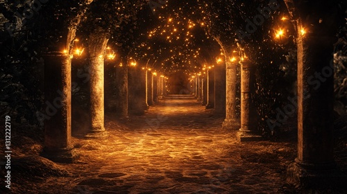 Enchanting Night Pathway Illuminated with Lights