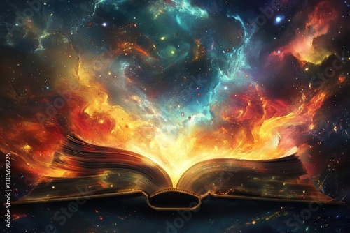 Enchanting Open Book Spread Unfolding a Mystical Storytelling Realm with Vibrant, Dreamlike Illustrations and a Whimsical Literary Atmosphere