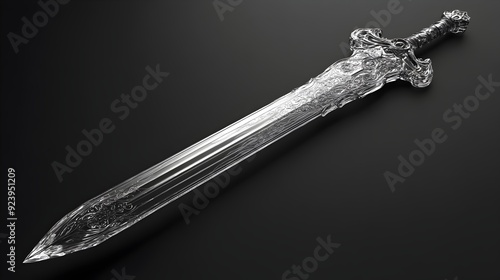 Enchanting Transparent Glass Sword with Intricate Blade and Hilt Reflections