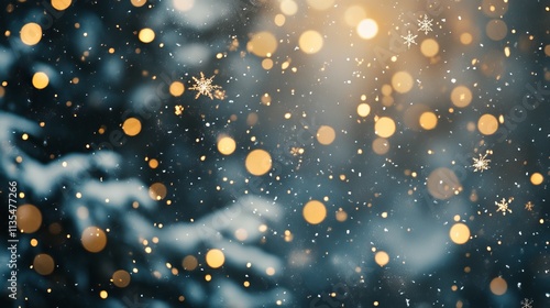 Enchanting winter scene with twinkling lights and falling snowflakes for holiday designs