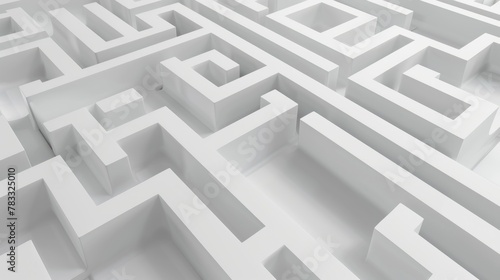 Endless Complexity: A 3D Maze - Aerial view of an intricate and endless 3D white maze.