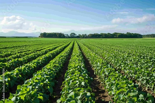Endless Fields of Sustainable Agriculture: Panoramic Crop Rows Amidst Vast Farmland