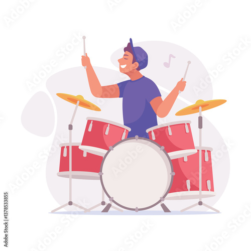 Energetic Drummer Enthusiastically Enjoying a Dynamic and Engaging Live Performance