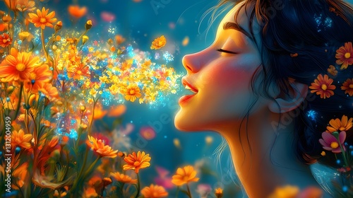 Energetic Lady Speaking with Fragrant Floral Breath in a Cartoon Art Style