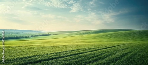 Energizing Electric Pylon Against Lush Green Fields Under a Clear Blue Sky with Expansive Copy Space for Text