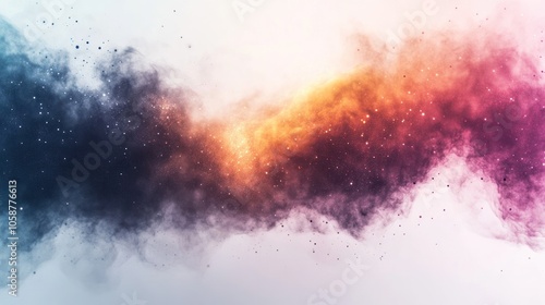 energy and cosmic dust, with radiant galaxies and colorful nebulae set against a minimalist