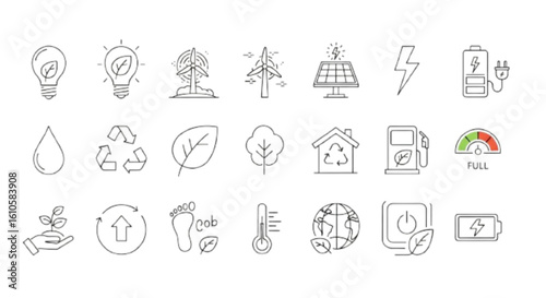 Energy Efficiency Line Editable Icons set. Vector illustration in modern thin line style of ecology related icons: energy saving light bulb, sustainability, electricity,