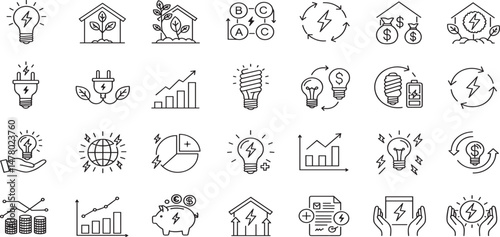 Energy Efficiency Line Editable Icons set. Vector illustration in modern thin line style of ecology related icons: energy saving light bulb, sustainability, electricity, and more