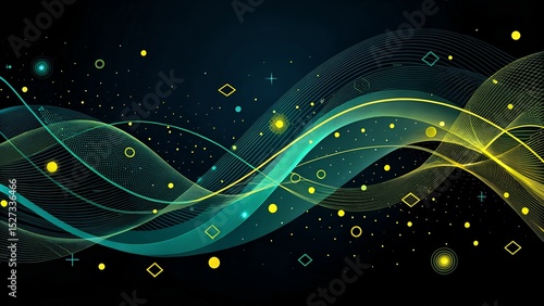 "Energy Flow: Abstract Waveform with Glowing Particles"