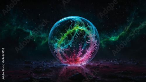Energy interaction forming a radiant orb visualization showcasing dynamic forces, glowing particles, and abstract motion in a futuristic concept of power, light, and elemental fusion in visual design