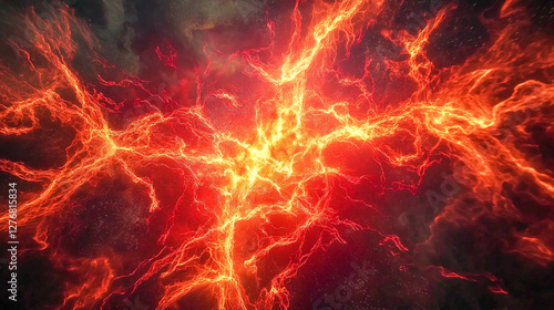 Energy shock wave, a red shock wave spreading from the central point, illuminates the entire black background