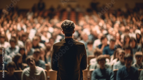 Engaged Audience in a Conference Hall: Captivating Lecture by Male Speaker on Business and Entrepreneurship. Presentation of a teacher Generative AI