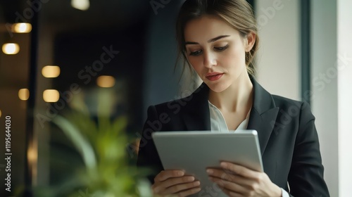 Engaged Businesswoman Using Tablet in Modern Office Setting