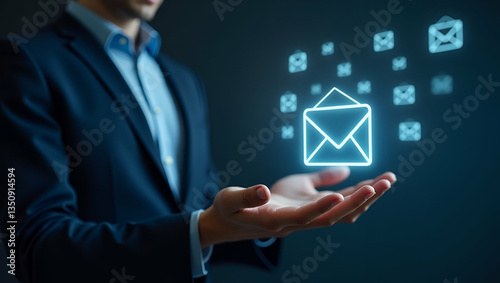 Engaging Flat Person Interacts with Floating Digital Interface Showcasing New Email Notification Symbol for Effective Online Communication & Email Marketing Strategies