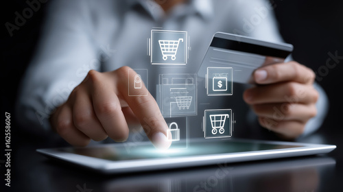 Engaging in online shopping with a tablet and credit card in a cozy environment