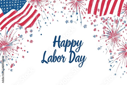 Engaging in the shared excitement of national Labor Day. Side view of american flag, set of tools, safety helmet, work gloves on wooden brown background with empty space for promo or text