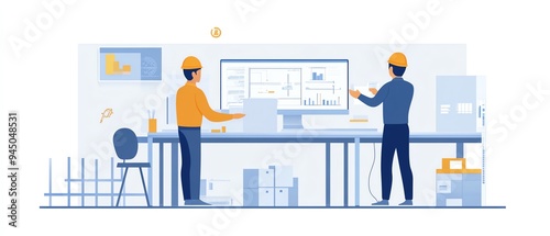Engineer and foreman in factory, consulting with director about new production project, team management and investment strategy