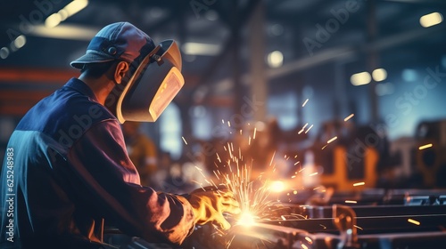 Engineer check and control welding robotics automatic arms machine in factory automotive industrial. blurred digital manufacturing operation. Industry. generative ai.