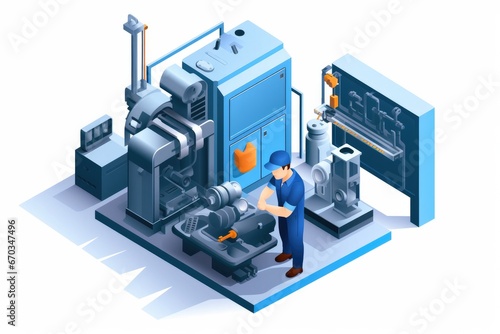 Engineer Maintenance machine isometric industrial employee worker fixing in factory element on white background isolated.