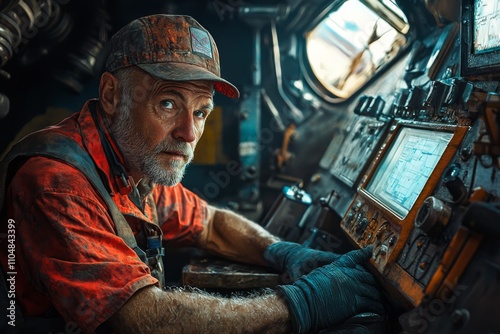Engineer Operator working in a factory doing monitoring and maintenance in industrial environment