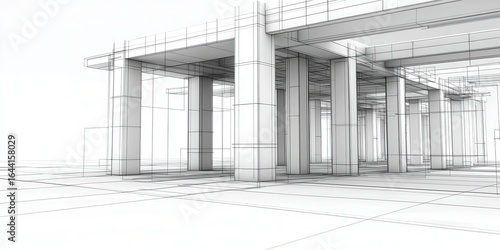 Engineer structural analysis Concept. Architectural sketch showcasing a complex structural framework with pillars and beams.