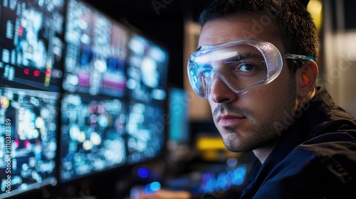 Engineer technician working on high-tech systems in a control room capturing the essence of innovation and safety