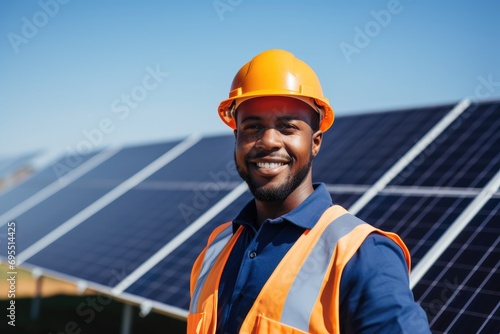 Engineer walking in solar farm through solar panel field, inspection installed solar panels.