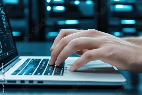 Engineer Working on Laptop Near Warehouse Loading Dock