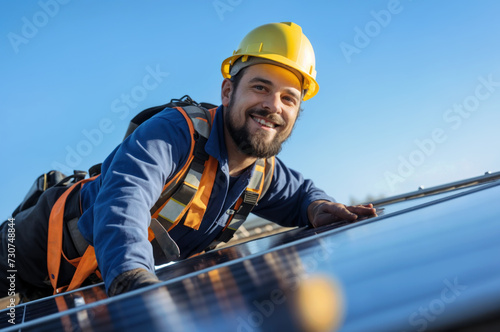Engineer working on solar panels. Harnessing innovation and renewable energy for a sustainable future, ensuring efficiency and safety in Photovoltaic Power Generation