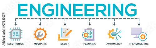 Engineering concept banner web. Editable infographic vector with icon of electronics, mechanic, design, planning, automation and it engineering