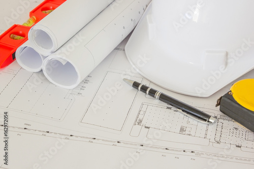 Engineering diagram blueprint paper drafting project sketch architectural, Selective focus