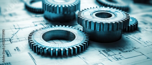 Engineering Precision: Gears on Blueprint