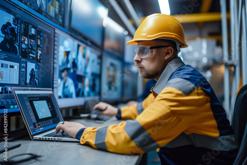 engineering systems. A maintenance engineer checks the system. Control block. Business and professions.