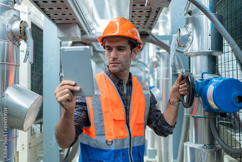 Engineers check and adjust the valves to ensure the proper amount of water flows into the air conditioning pipes.