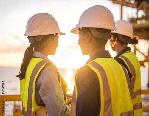 Engineers discussing at sunset