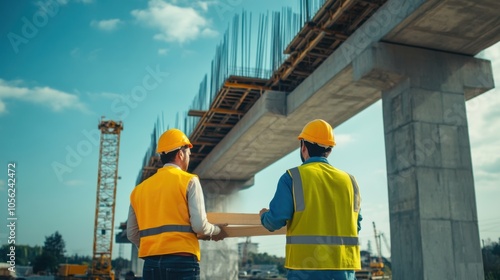 Engineers inspecting the structural integrity of a newly constructed flyover bridge.