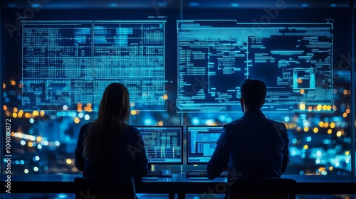 Engineers overseeing renewable energy systems at an advanced smart energy facility, ensuring efficient resource management and sustainability