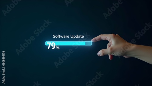 Enhance System Performance: A Cute Vector Illustration of a Glowing Progress Bar at 79% for Software Update with a Guiding Hand - Manage Your Software Life Cycle Effectively