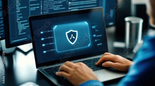 Enhancing cybersecurity measures remote workspace digital security tech environment close-up view data protection strategy