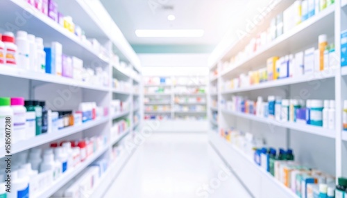 Enhancing wellness abstract commercial pharmacy space with glowing shelves and pastel packaging