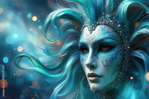 Enigmatic fantasy portrait of a female with intricate face paint and vibrant hair