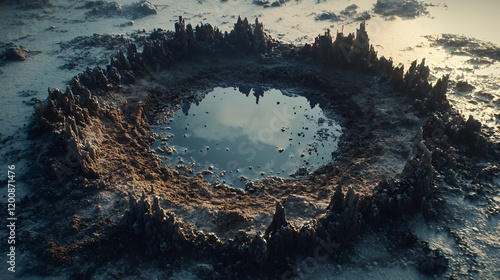 Enigmatic Miniature Landscape: A Serene Puddle Reflecting an Alien Sky