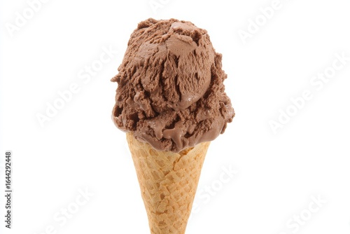 Enjoy a delightful scoop of rich chocolate ice cream served in a crispy waffle cone.