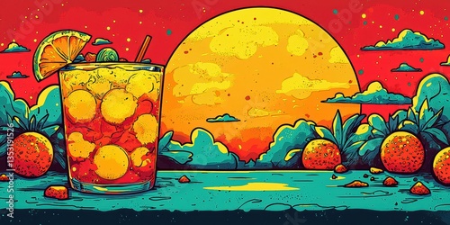 Enjoy a refreshing summer sunset cocktail! This orange citrus drink, a delightful beverage with ice, is perfect for a fruity evening.
