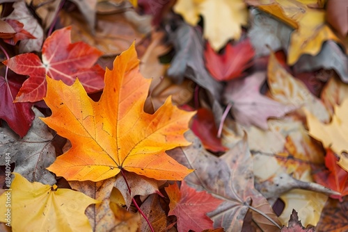 Enjoy the sight of vibrant autumn leaves in a range of colors as the sun sets in the background