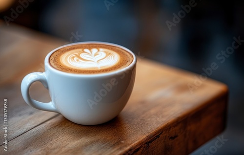 Enjoying a Cup of Coffee Latte with Art on Wooden Table