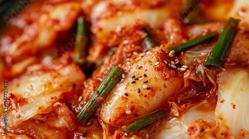 Enjoying spicy Korean fermented kimchi close-up Generative AI