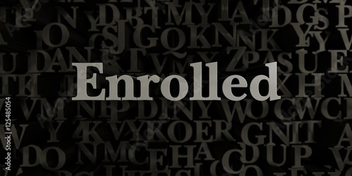 Enrolled - Stock image of 3D rendered metallic typeset headline illustration. Can be used for an online banner ad or a print postcard.