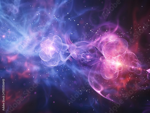 Entangled particle, quantum entanglement concept with particles and energy flow,